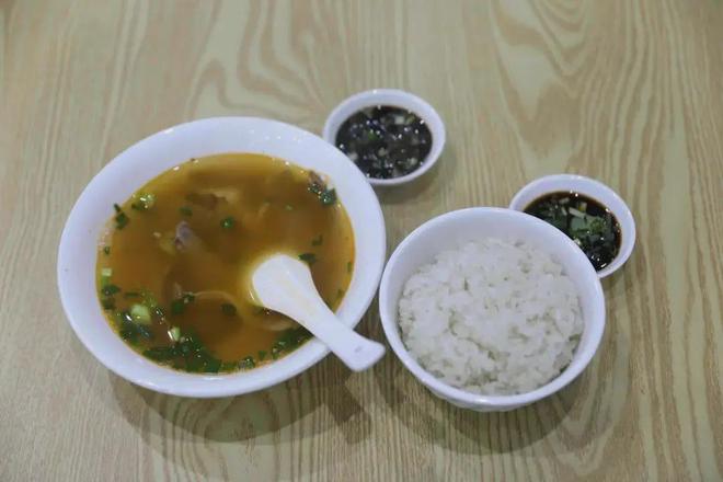 来这儿,点一份粢饭加牛杂汤才是正确配置。炖煮过的牛肉牛杂大火沸水煮开,然后从木桶里挖出一碗香喷喷、口感软糯的蒸米饭,加一小碟酱料,上桌,开吃!